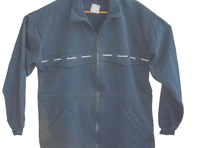Praktická a slušivá mikina celá rozepínací se zipem do límce. Dole a v pase na stažení šňůrkou. Na předním sedle zdobená šňůrkou kontrastní barvy.